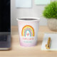 This adorable birthday party paper cup is perfect to add a personal touch to a girl's birthday celebration. This boho design features a cute rainbow in orange, yellow, pink and teal and is accented with a pink heart.