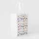 I own a lot of reusable grocery bags, but this one holds its box shape and simply stands up on its own even if there is nothing in it. Its stiffer than your regular reusable bag too, and the material is water resistant. I poured water on the exterior and it didn't penetrate inside to the other side. I'm buying a couple more. Wish I knew how durable these bags were or I would have purchased a few more with my initial order. I also like how it folds and buttons up when not in use, making it easy to put into a handbag or luggage. I haven't used this bag yet, as I purchased it for travel use, like when you're at the airport and need to small sturdy bag to place any airport purchases in, like food, souvenirs etc. I can tell you when you first see this bag, it looks very cheap, but after closer inspection of the material and the seams its a very sturdy reusable bag. I tested it out by putting some really heavy objects inside and I could not observe any stress to the bag at all. Another thing I like about it, is the fact the medium size that this is makes it easy to just carry it in your hand without the bottom of the bag scraping the ground, like most other bags do when you're short. That alone, deserves 5 stars. I just wish there were more colors to choose from! The PDX Airport Carpet printing looks just like the photo, and using this bag during travel might be a conversation piece when/if a native from Oregon happens to see it.