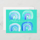 Cute colorful design of patterned rainbow in blue and aqua with a boho theme and I believe in magic quote Creative and arty against an aqua blue background. pattern collage art style.