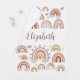 Bring a splash of boho elegance to the new baby's bedroom with this cute design. Trendy and colorful rainbows are the hero of this design, alongside a custom monogram to create a keepsake forever. Makes a wonderful gift for a newborn or young child.