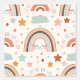 Brighten up your little one's space with this cheerful boho rainbow wallpaper. Featuring a playful rainbow design in soft, muted colors, this pattern creates a calming and happy atmosphere for nurseries, bedrooms, or playrooms. The subtle boho textures add a touch of whimsy and charm, making it a perfect choice for any child's room.