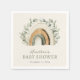 Boho Rainbow Paper Napkins. Introducing our enchanting Boho Rainbow Baby Shower Collection, where whimsical hand-painted watercolor rainbows in earthy tones of sage green, terracotta, and tan dance alongside trendy eucalyptus botanicals on a serene beige backdrop, with a complementary pattern on the reverse in deep sage. Embracing a rustic, bohemian chic aesthetic, this collection encompasses everything you need for a memorable celebration, from exquisite invitations and enclosure cards to a charming welcome sign, delightful gift tags, favor bags, and even coordinating paper plates, cups, and napkins. Let this collection set the stage for a joyous and stylish gathering to celebrate the impending arrival of your little one.