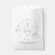 Whimsical boy baby shower favor bag featuring pastel blue and yellow watercolors of a rainbow, sun, hearts, stars, moons and clouds and "Oh Baby!" in a stylish calligraphy script. Personalize the mother-to-be's name and the shower date in simple modern typography.