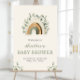 Boho Rainbow Welcome Sign. Introducing our enchanting Boho Rainbow Baby Shower Collection, where whimsical hand-painted watercolor rainbows in earthy tones of sage green, terracotta, and tan dance alongside trendy eucalyptus botanicals on a serene beige backdrop, with a complementary pattern on the reverse in deep sage. Embracing a rustic, bohemian chic aesthetic, this collection encompasses everything you need for a memorable celebration, from exquisite invitations and enclosure cards to a charming welcome sign, delightful gift tags, favor bags, and even coordinating paper plates, cups, and napkins. Let this collection set the stage for a joyous and stylish gathering to celebrate the impending arrival of your little one.