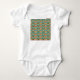 This baby bodysuit has a boho design of overlapping rainbows in boho colors of blue, green, yellow, and red.