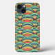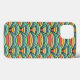 This phone case has a boho design of overlapping rainbows in boho colors of blue, green, yellow, and red.