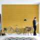 Boho rainbows pattern, cream on mustard background, peel and stick wallpaper.