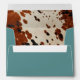 Boho Ranch Faux Cowhide Save the Date Envelope is part of the Boho Ranch Wedding Collection. Turquoise envelope displays a colorful dream catcher with feathers, flowers and turquoise on the flap. The liner features a "faux" cowhide. A beautiful way to impress your guests with this memorable envelope. Combine it with one of our Boho Ranch Envelopes and any other complementary items from our Boho Ranch Collection.