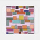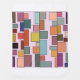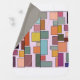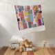 This baby blanket has a boho modern design of rectangles attached to vertical lines in various sizes and retro colors.