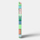 This phone case has a boho modern design of rectangles attached to horizontal lines in various sizes and boho colors.