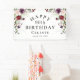 A feminine watercolor floral birthday party banner with unique boho floral corner bouquets in the stylish color combination of burgundy red, blush pink, plum purple, and peach with sumptuous greenery scattered throughout. It makes a wonderful choice for celebrations from mid-summer, to fall and throughout the winter months. Personalize this banner with the guest of honor's name and the birthday date. Shown here celebrating an 90th birthday, you can personalize the age to any age.