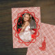 Boho Red Glitter & Plaid Oval Photo Christmas Holiday Card