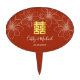 Boho red modern floral Chinese wedding Cake Topper