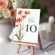 Boho Red Wildflowers Script Wedding Table Number. Please edit and add each number to your cart individually. Table is set in a handwriting style script and your table number beneath. Easily personalise the number. The same design is on the other side and will update simultaneously as you make your change to the number.