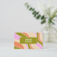 A groovy retro 70's style abstract style business card featuring eye catching abstract wavy lines and a chunky retro typeface for your name. Colorful and bold in hues of pink, green, orange and tan.
