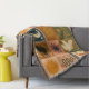 A quality printed throw has its advantages. This is a much finer weave throw than its loopier cousins, and though lighter, it is worth the investment for custom room accessorizing. The back is much prettier than the typical brown, and the fringe on the long sides very vivid, the selvage nicely done. Before photographing, I washed the throw in cold water, delicate, with a thicker woven throw the same size. On tumble dry low, this throw was dry in half the time as the other. This is a very practical quality if you use throws for furniture covers or to wrap up in frequently. The sleekness of the fabric makes it a great layer for accenting or protecting without the feeling of sitting on too much stuff. Perfect for napping or when you feel a light chill coming on. The color printing is beautiful and on this fabric, matched the design and color of my Photoshop image. This is an advantage for blending room fabrics and colors. The fringe on the short sides prints the colors from the design image and therefore varies from the side fringe. I streaked a white fractal line through the plaid pattern to give the illusion of weaving. This printed as crisp as an illusory thread, and put some white in the short side fringe, showing another advantage of print vs loomed- for artistic purposes, line lines, detail, and color integrity can be planned and preserved. My loomed throws have color limitations and more of a needlepoint texture. Print throws reproduce an exact image. The throw felt a little stiff straight out of the package, but this went away in the first delicate wash. Of course I searched the wash water for ink or bleeding and there was none.