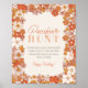 This boho/bohemian baby shower pacifier hunt sign poster features groovy and retro wildflowers in orange shades. Personalize it for your needs. You can find matching products at my store.