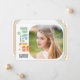 This multi-colored photo graduation announcement card features a retro theme featuring boho colors. The square photo is accented with rounded corners. The backside offers custom text for you to add the graduate's name, school, and future plans.