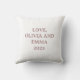 This boho and stylish pillow says "love you mom" in trendy boho and retro typography, in gradient shades of pink and darker rose. The perfect gift for Mother's Day or any time! The back of the pillow features your name and the year, or any message of your choice.