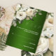 Whether your style is traditional or bold, this boho emerald green wedding RSVP is sure to make a statement. Make your special day even more unforgettable with this classic and timeless floral announcement featuring an eye-catching yet elegant emerald green background and white rose bouquet. This gorgeous wedding response card with its vintage floral arrangement is sure to capture hearts. Perfect for a variety of wedding themes, from boho, floral, rustic, vintage, garden setting and more, this charming green RSVP will ensure that your unforgettable day is remembered for years to come.