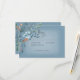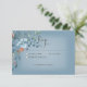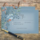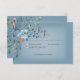 This wedding response card design features beautiful blue and burnt orange rust watercolor corner florals on a soft white blur rectangle placed on a dusty blue background. Soft and delicate; perfect for any season. Created by Simply Farmhouse Press.