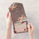 This design features a rust, peach, white and cream watercolor floral bouquet frame on a soft cocoa background. Personalized All-In-One invitations are a unique combination of both a beautifully printed custom invitation with an easy to tear off perforated RSVP postcard. And they are so easy to use! You simply fold, then seal the back flap with the three included clear stickers, and mail. And when your guests receive your custom invite, they just tear the perforated RSVP Card off and drop it back in the mail to you!