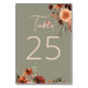 Boho Rust & Neutral Fall Floral Sage Green Table Number