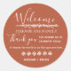 Boho terracotta rust colored wedding stickers are a great way to welcome your guests and to thank them for coming to your wedding celebration. They read: Welcome friends and family. Thank you for joining us to celebrate today. It means the world to us that you are here. Customize with your names.