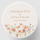The candle is adorned with an elegant script and modern typography, personalized with the bride and groom’s names and wedding date, making it a unique and meaningful keepsake. Whimsical florals add a charming boho flair, creating a delightful fusion of nature’s elegance and seasonal beauty. Designed with original artwork by Catherine Sweetman, this candle is the perfect addition to your wedding decor, offering a timeless and personal touch for your celebration.