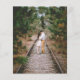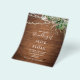 Boho wedding invitation features watercolor greenery and string lights on rustic wood.