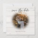 "BOHO Rustic Script Typography Pampas Grass Photo Save the Date." Simple, rustic yet elegant design with your engagement photo with a soft cottage white painted wooden board background and "save the date" in a handwritten script typography style. On the reverse side is a BOHO Bohemian style wreath of Pampas grass and natural dried greenery that was painted in watercolor by internationally licensed artist and designer, Audrey Jeanne Roberts, copyright.