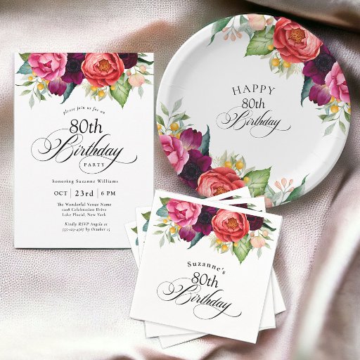 Boho Rustic Watercolor Floral 80th Birthday Party Napkins