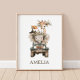 Add a sweet touch to your new baby's room with this Boho Safari Animals wall art. Featuring a whimsical watercolor elephant driving a giraffe and a toucan in a truck, all wearing cute floral crowns, this dreamy design is perfect for a nursery. Add a name for a special, personalized touch!
