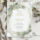 Boho sage eucalyptus leaves gold glitter wedding invitation