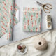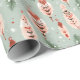 A fun trendy boho sage green, terracotta and pink feathers and trees on this Christmas wrapping paper for the holiday's.