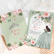 Plain white envelopes are included with paper invitations and will come to fit the invitation size you select. If you don’t need the envelopes, you may choose to not receive them by selecting the dropdown below "Envelopes" and choosing "None." If you’d like to have a design on your envelopes, you can browse all of these available envelopes to find the design that complements your Boho Sage Green Pink Floral Quinceanera Invitation.
