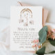 Send your heartfelt thanks with this sweet baby shower thank you card, featuring a hand painted boho sheep mobile in soft watercolor tones. The neutral design suits a variety of themes, including boho, rustic, and gender neutral baby showers. Personalize the message inside to express your gratitude to guests for their love and support. This charming thank you card pairs beautifully with matching invitations or shower stationery. Perfect for parents who love soft pastels and cozy, minimal style.