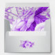 A gorgeous silver and purple floral envelope with a rose theme. There is a purple rose bouquet on the front of the envelope in the top left corner, and a smaller rose bouquet on the back. Inside is a larger version of the same purple rose bouquet to line the inside of the envelope. The outside of the envelope is also covered in a glamorous, silver metallic design.