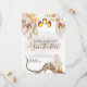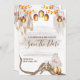 A wonderful and vibrant illustration featuring beautiful macrame feathers hanging behind faux sparkling string lights and hanging lanterns. A beautiful white wedding cake adorned with orchids and anemone flowers rests behind old wooden branches on which wicker lanterns and a lantern candle are resting. These are ideal for rustic country fall / autumn, summer, spring, African safari bush or winter "save the date" announcements. These luxurious and elegant flat cards will delight your guests.