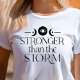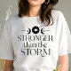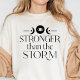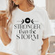 Stay resilient with this empowering boho-inspired "Stronger than the Storm" shirt. Featuring celestial symbols like crescent moons and stars, this design is perfect for those who embrace strength in the face of adversity. The black-and-white aesthetic offers versatility, while the bold message reminds you of your inner power. Ideal for anyone who loves motivational quotes paired with a celestial boho vibe, this shirt is both stylish and meaningful. Wear it as a reminder that you are stronger than any challenge that comes your way.