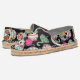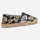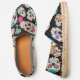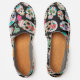 A variety of brightly colored boho style sugar skulls placed on the background color of your choice make an interesting and unique pattern on these espadrilles. There's even a snake!