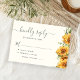 Rustic bohemian watercolor yellow golden sunflowers and greenery chic script ivory cream wedding response kindly reply RSVP card.