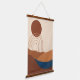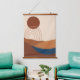 A boho bohemian sun with rainbow lines landscape wall hanging tapestry. The colors are earth tones of terracotta, beige and blue.