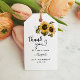 Boho kid's birthday party gift tag featuring watercolor illustration of yellow sunflowers with baby's breath. The text says "thank you for coming to my party."