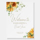 Watercolor yellow sunflowers elegant rustic modern spring summer fall garden bridal shower welcome sign foam board with flowers and greenery foliage on a clear white background.