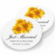 Add an elegant touch to your wedding or next party with these beautiful yellow floral shower drink coasters. The coasters feature sunny yellow sunflowers and highlight your Just Married wedding announcement information printed in elegant and easy-to-read fonts. These sunny botanical yellow flower coasters are perfect for spring and summer events, including garden, country weddings, bridal showers, parties, businesses, fundraisers, or for personal use. For more options, you can look at the matching products and gifts below.