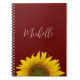 Boho Sunflower personalized notebook, with an elegant floral design with a red background. With customizable script lettering, you can add your own name. Great for adding a stylish touch to your office or school supplies.