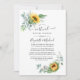 Bright sunflower and eucalyptus wild greenery themed long distance virtual wedding invitation customizable to your event specifics.