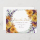 Beautiful watercolor sunflower and wild flowers with gold script Save the Date postcard.. Customize the information with your own wedding event details.