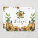 Boho Sunflower Rustic Wildflower Wedding Thank You Postcard